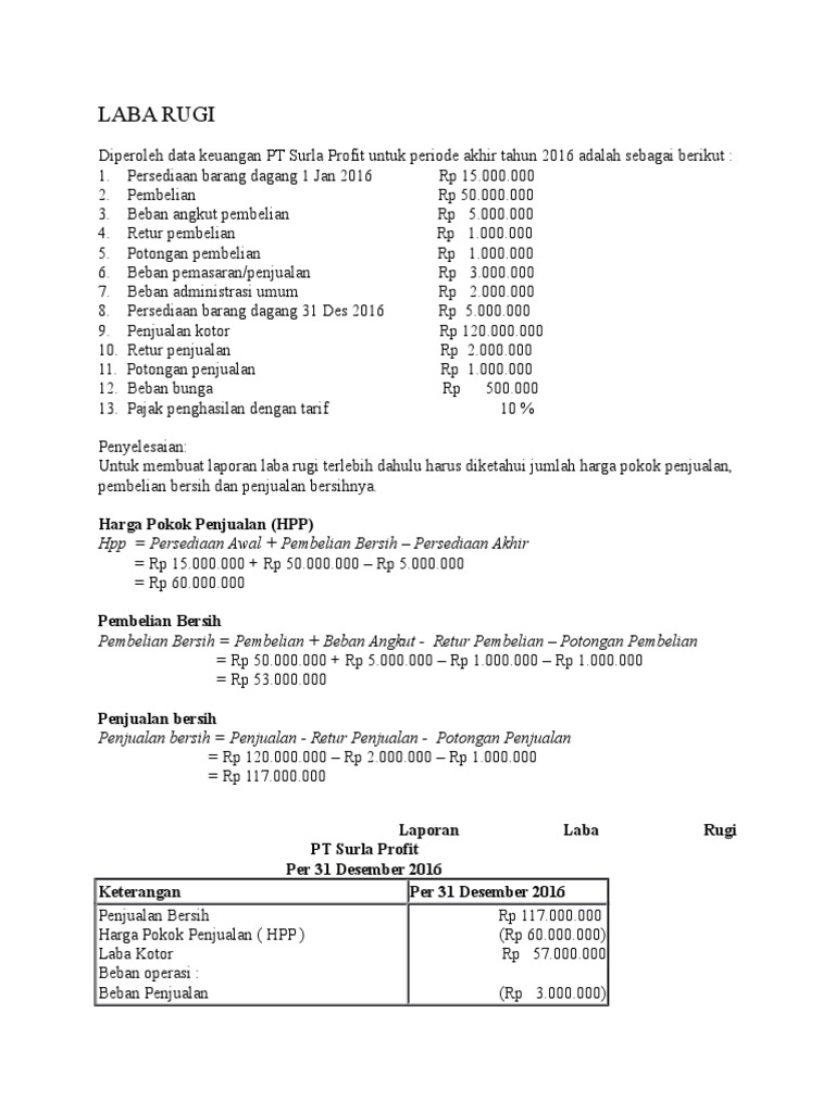 Pengertian Laba Bersih Dan Cara Menghitung Laba Bersih from accurate.id Laba bruto atau laba kotor adalah penjualan dikurangi harga pokok penjualan. Contoh soal dan jawaban rekonsiliasi fiskal lengkap. Rasio net profit margin dalam ilmu analisis saham dasar tergolong dalam rasio profitabilitas atau rasio yang mengukur tingkat keuntungan dari bisnis yang dijalankan. Kali ini admin menulis contoh soal laba maksimum dan penyelesaiannya. Nahh, itulah artikel tentang 7 contoh soal persediaan sistem periodik & perpetual lengkap dengan pembahasannya, jika ada yang ingin ditanyakan mengenai materi bisa menghubungi instagram atau facebook kami. Setelah ditimbang ternyata cuma 99,25 kg. Kebetulan sekali, sekarang saya mau menggunakan laporan keuangan terbaru dari pt. Rp 25 000 000 pengeluaran investasi: