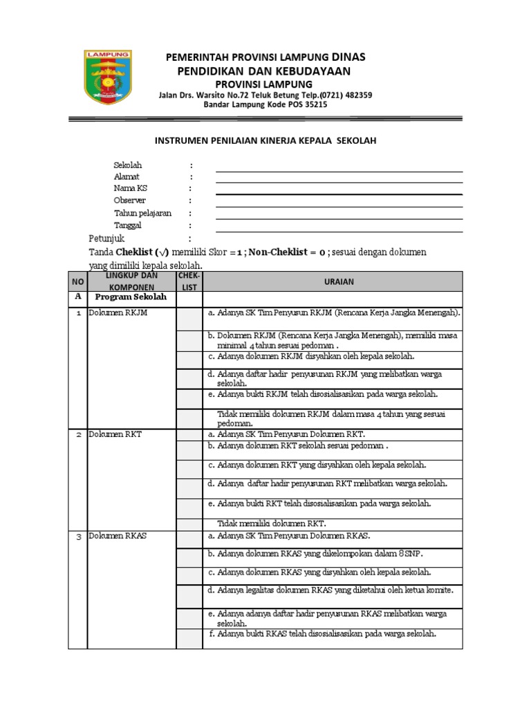 Dalam melakukan acara tersebut biasanya pengawas sekolah membetntuk tim agar nanti dapat dengan gampang dalam menilai setiap administrasi kepala sekolah. Format instrumen penilaian kinerja kepala sekolah (pkks) 2017 excel ini merupakan format terbaru yang akan saya bagikan dalam kesempatan kali ini secara gratis. Kumpulan file pkks 2019 instrumen, dokumen bukti fisik marta selasa, oktober 29, 2019 administrasi kepala sekolah madrasah. Pkks atau banyak juga yang menyebutnya dengan pkg kepala sekolah, untuk itu seorang kepala sekolah selain melaksanakan pkg seiring dengan tugas utamanya sebagai pengajar, tetapi juga kepala sekolah. Bukti fisik pkks komponen 6 supervisi pembelajaran.docx. Data utama, instrumen pkks, dan pengaturan. Bukti fisik dokumen pkks 2019. Jadi tentunya bapak dan ibu yang sudah lama menjadi kepala sekolah baik pada jenjang sd smp sma smk tidak aneh lagi dengan kegiatan penilaian tersebut. Selain aplikasi ini disini kami juga sediakan instrumen pkks yang akan harus diisi secara manual serta berbagai bukti fisik pkks. Instrumen penilaian kinerja (pk) kepala sekolah tahun 2020. Download instrumen penilaian kinerja kepala sekolah (pkks) 2019 ini merupakan file terbaru yang akan kami bagikan pada kesempatan yang baik ini. Aplikasi instrumen pkks format excel tahun 2018 ini merupakan instrumen terbaru yang banyak direkomendasikan assesor pada penilaian kinerja kepala sekolah (pkks) tahun pelajaran 2017/ 2018 ini. Aplikasi instrumen pkks terbaru 2019 berkaitan dengan kegiatan penilaian kinerja kepala sekolah (pkks), akhirnya kami sedikit berkreasi untuk mencoba membuat sebuah aplikasi format excel instrumen pkks yang kami bagikan secara gratis yang dapat digunakan untuk semua jenjang sekolah baik untuk kepala sekolah sd/mi, smp/mts maupun sma/ma/smk/mak.