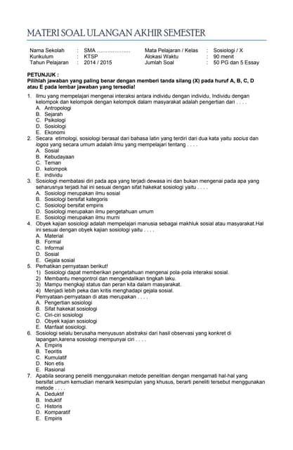 Kisi kisi uas sma kelas 10 semester 1 kurikulum 2013 dan ktsp tahun 2018/2019. Sistem pelapisan pada suku bangsa di indonesia atau pada masa penjajahan fungsi stratifikasi social. 45 menit mata pelajaran : Dalam postingan kali ini saya bagikan secara lengkap kisi kisi uas sma/ma kelas 10 mata pelajaran biologi, fisika, kimia, sosiologi, geografi, sejarah, ekonomi, matematika, pai, pkn. Kisi kisi uas kelas 10 kurikulum 2013 Selain soal ukk bahasa inggris kelas 10 11 semester 2 ini, kami juga sediakan soal uas lainnya seperti bahasa sunda, ipa, ips, pai, ppkn, matematika, pjok, seni budaya, kkpi, kwu, fisika, bahasa indonesia, kimia, sejarah indonesia, serta soal bidang produktif dari berbagai bidang. 20 (15 pg, 5 uraian) kelas/semester : Sebagai materi referensi, disini aku akan bagikan kisi kisi uas sekolah menengan atas semester 2 lengkap untuk semua mata pelajaran memakai kurikulum 2013 dan ktsp yang sanggup anda download secara gratis. Pengertian upaya bela negara 2. Menjelang kegiatan penilaian akhir tahun atau dulu lebih dikenal dengan istilah ulangan akhir semester (pas atau uas) pada tahun 2019 tentunya kita sebagai guru pada mata pelajaran ski harus membuat soal. 120 menit mata pelajaran : Kisi kisi soal uas semester 2 kelas 2 3 4 dan 5. Bagi bapak dan ibu guru mata pelajaran pendidikan kewarganegaraan, yang membutuhkan soal pkn kelas 10 semester 1 kurikulum 2013 beserta kunci jawabannya silahkan anda ambil saja di bawah ini.
