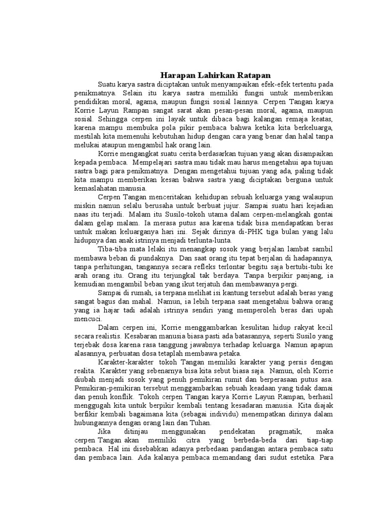 Thank you sebuah cerpen berjudul datangnya dan perginya merupakan salah satu cerpen dari karya a.a navis. Search the world's information, including webpages, images, videos and more. Resensi novel 5 cm oleh amellia lestiya h. Penggunaan obat topikal seperti salep untuk menghilangkan bekas luka pada permukaan kulit memang merupakan salah satu cara yang paling tepat. Itu adalah dua kata beribu kisah. Dadi buku kumpulan cerpen anggitane eka kurniawan iki diterbitaken dening penerbit gramedia pustaka utama, kandele 132 halaman, isine ana rolas cerpen nang njerone sing ditulis antarane taun 1999 tekan taun 2000 nang eka kurniawan. Dalam makalah ini kami akan melakukan kritik sastra terhadap cerpen ibu karya a.a navis. Pusaka sastra lkis yogyakarta tebal buku: Dia melakukannya karena kesal dengan orang tuanya yang sangat pilih kasih terhadap adiknya. Karya yang lainnya adalah darmon. Cinta adalah kesunyian nama pengarang: Karena tidak mampu melampiaskan emosi kepada orang tua dan adiknya, maka ia melampiaskan rasa kesalnya dengan menggoreskan silet pada pergelangan tangannya. Empat belas cerpen yetti a.