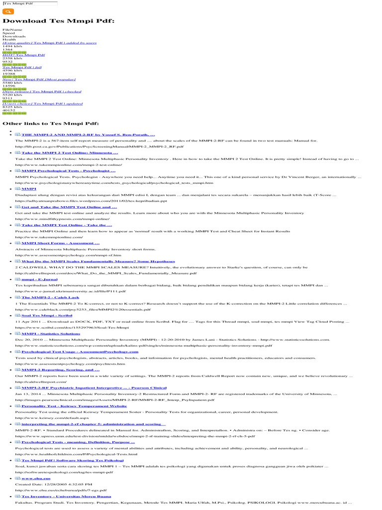 Pdf drive investigated dozens of problems and listed the biggest global issues facing the world today. Bagi yang menginginkan contoh soal mmpi 2 dan jawaban dalam bentuk pdf, silahkan untuk mencopy paste kan ini dalam software word kemudian di konvert dalam bentuk pdf. Assessing personality and psychopathology by john r. Scores • same interpretawon for men and women on most scales • pathology and personality descriptors at very high. • 567 items • item lebih objektif & bias dihilangkan • ada skala baru yang ditambahkan • most supplemental and all clinical scales.